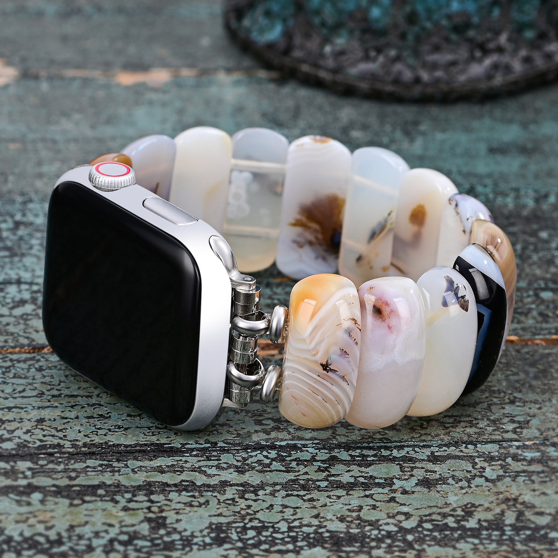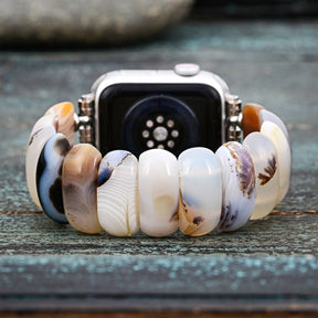 Embrace serene elegance with the Ivory Dune Agate Stretch Apple Watch Strap, featuring soothing beige and cream-toned stones. Known for its grounding properties, Agate promotes balance, emotional stability, and inner strength.