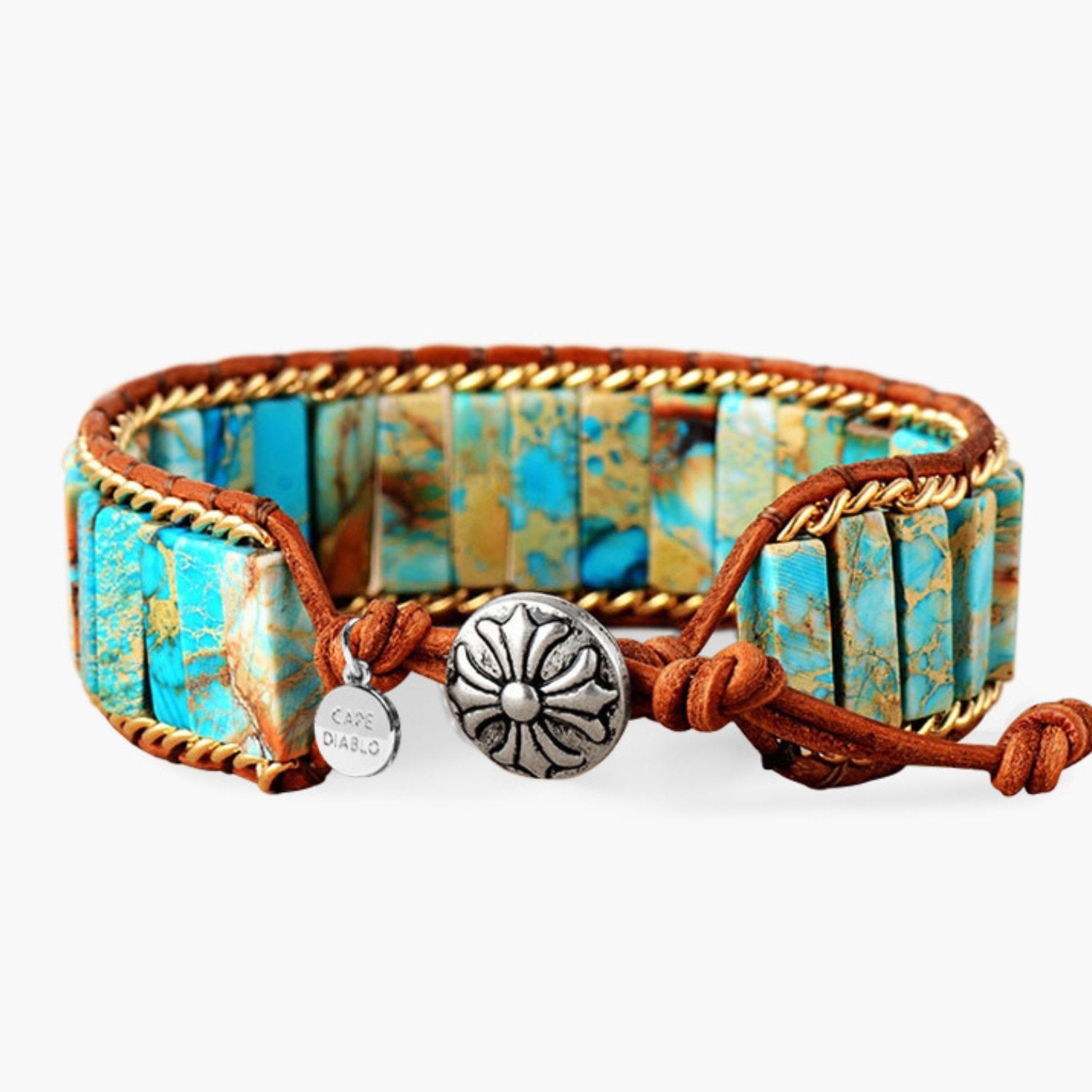 - Materials: Jasper, Howlite Turquoise, Genuine Leather, Alloy